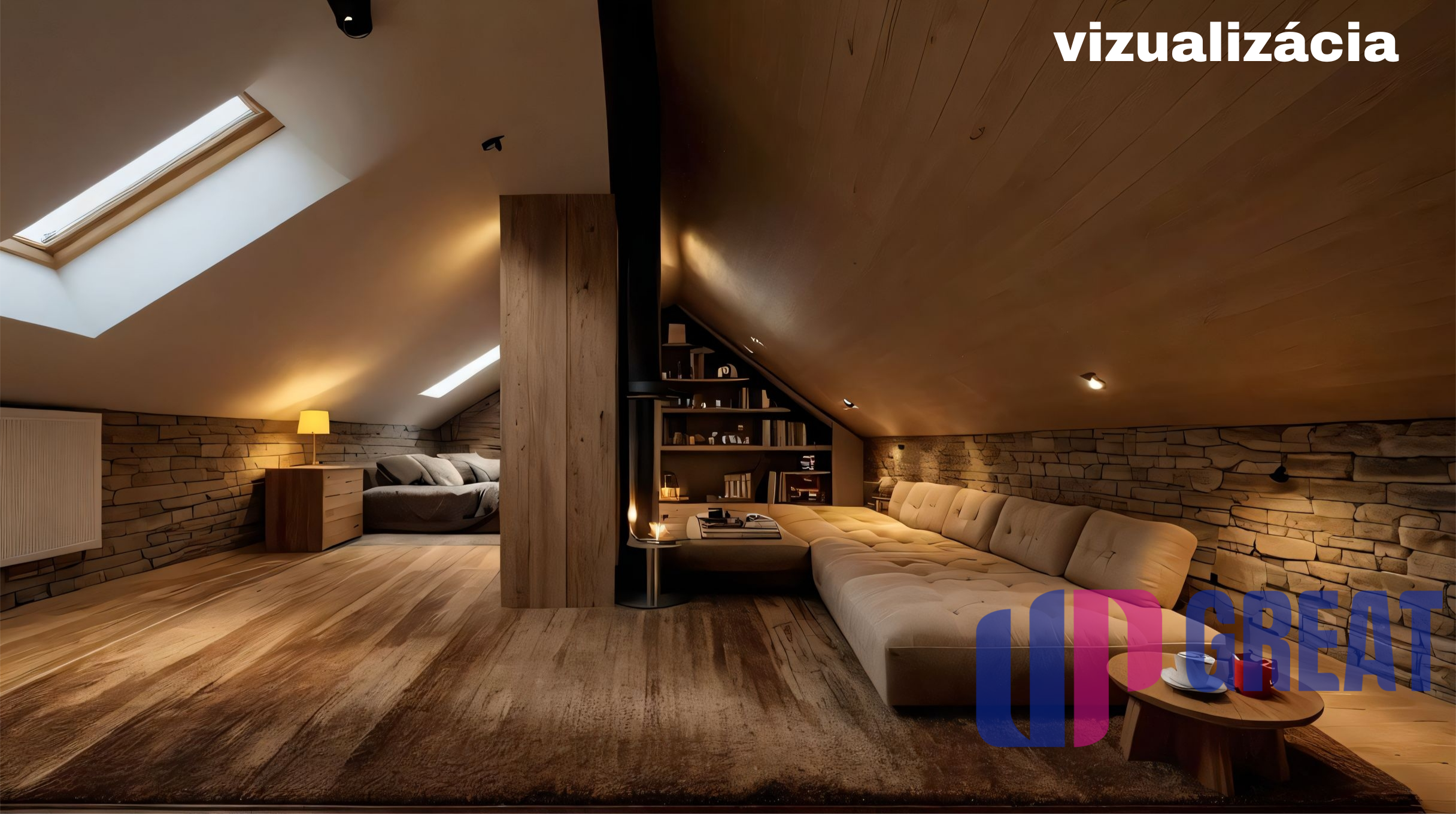 ✔momentálne jedna veľká spálňa so strešným oknom priamo nad posteľou (42,70 m2)