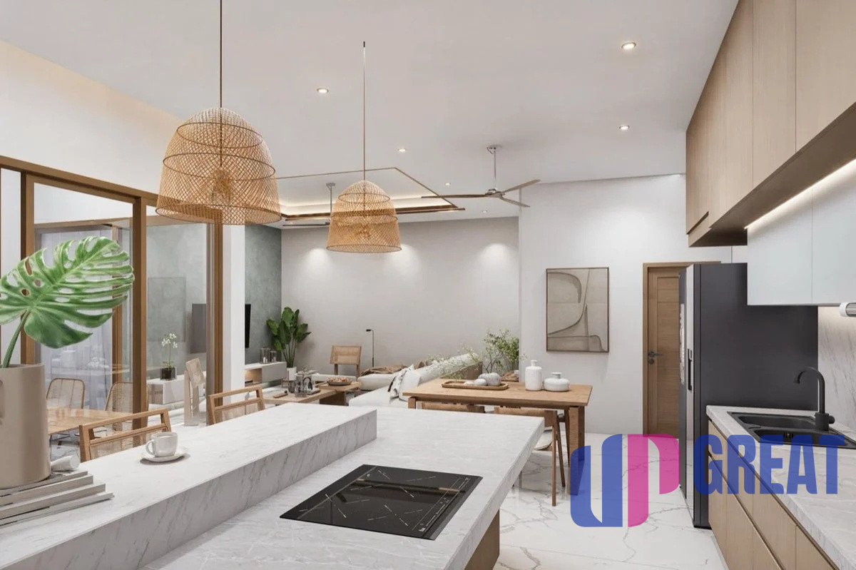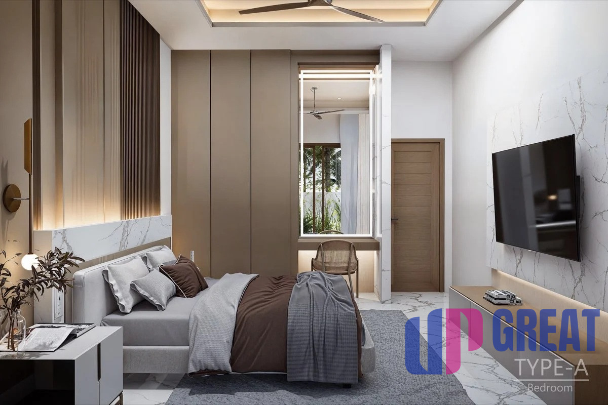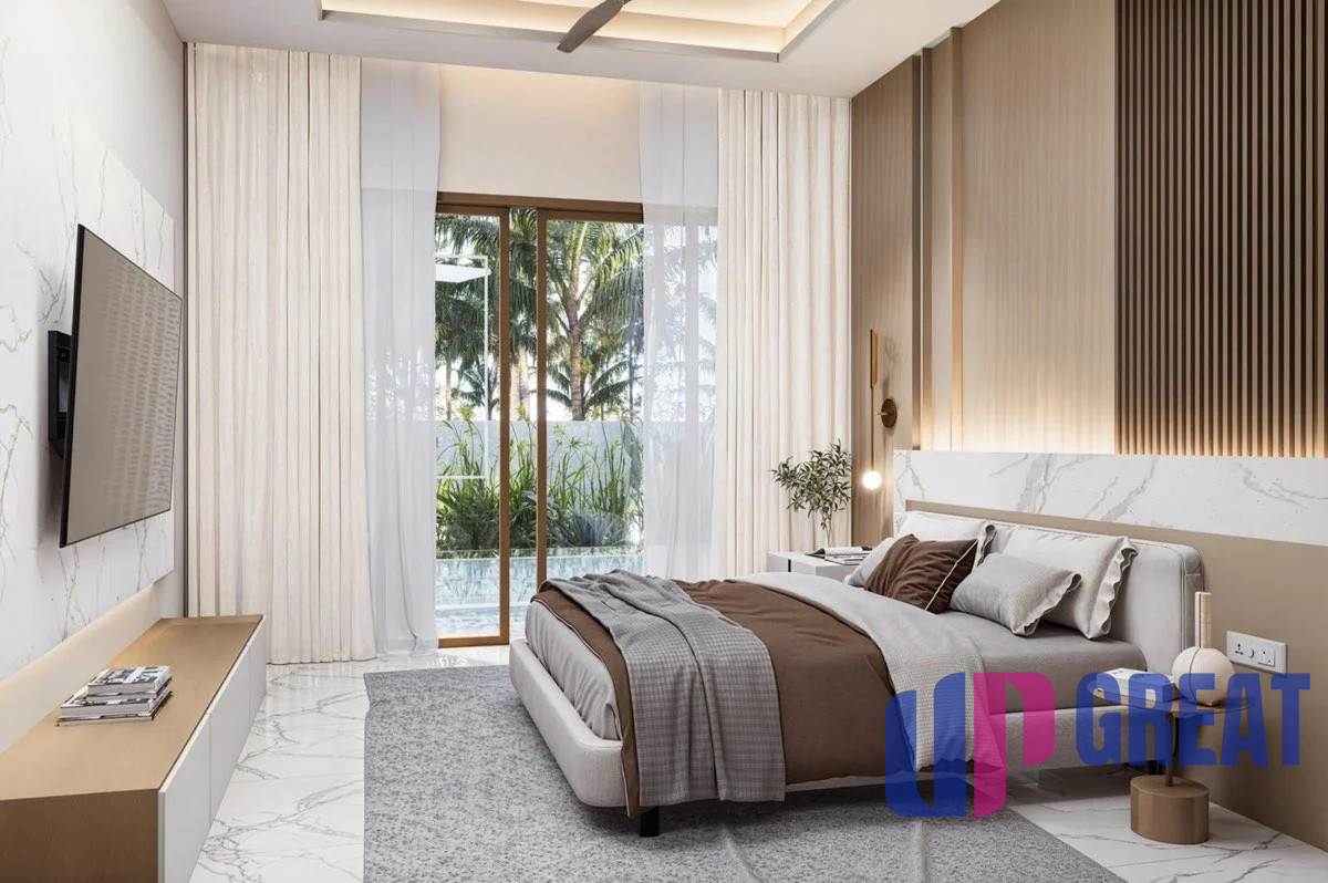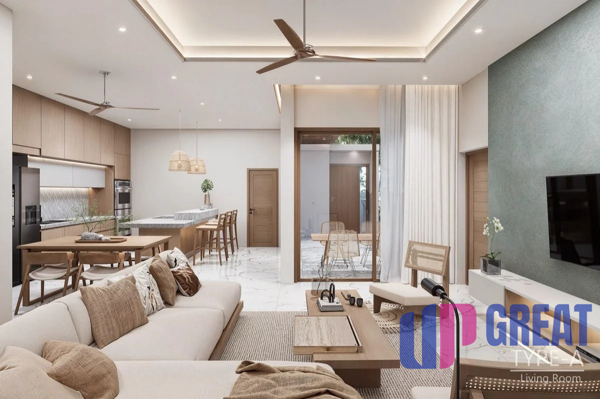 Každá vila je pripravená na nasťahovanie a navrhnutá pre bezproblémové bývanie na ostrove: plne vybavená kuchyňa so spotrebičmi, hliníkové okná s moskytiérami, zatemňovacie závesy v spálni a klimatizácia v každej izbe. Masívne interiérové dvere, vstavané skrine a integrované stropné osvetlenie sa dopĺňajú so stropnými ventilátormi vo vnútri aj na krytej terase. Vonku si môžete vychutnať súkromný nekonečný bazén a záhradu so základnou terénnou úpravou a parkovanie pre dve autá – to všetko v súkromnom rezorte s nízkou hustotou osídlenia a doplnené plne vybavenými kúpeľňami pre elegantný vzhľad.