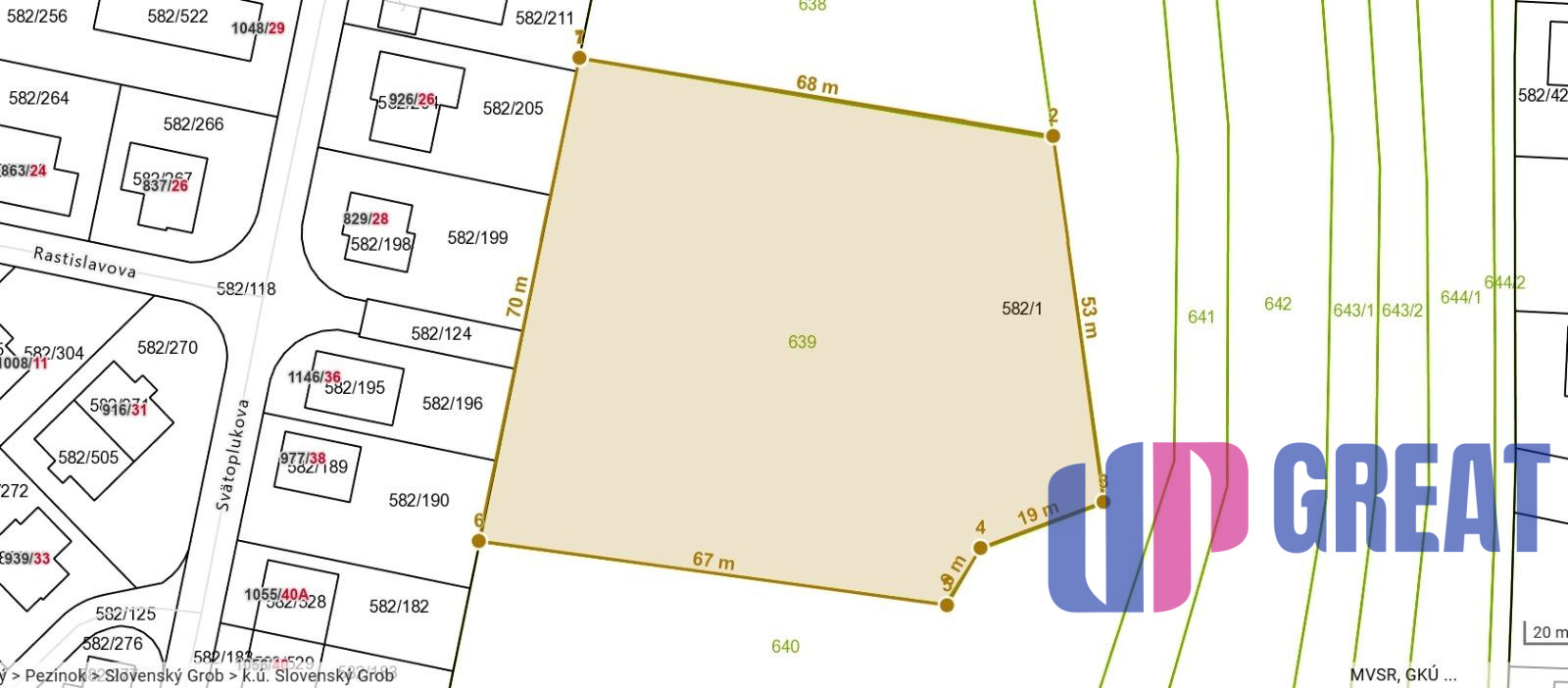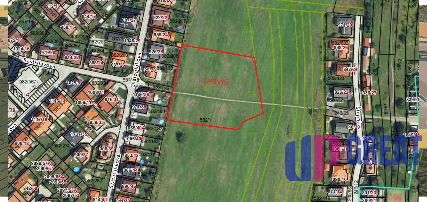 Realitná kancelária UPgreat ponúka exkluzívne investičný pozemok v katastrálnom území obce Slovenský grob č. 639 o velkosti 5298m2 určený v zmysle územnoplánovacej informácie je vedený ako orná pôda pre poľnohospodárske účely. No vzhladom na vytvorenie križovatky a pripojky k danému pozemku medzi ulicami Rastislavova a Školskou ulicou je predpokladané prepojenie týchto lokalít a tym dôjde aj k zmene uzemného planu v danej lokalite.