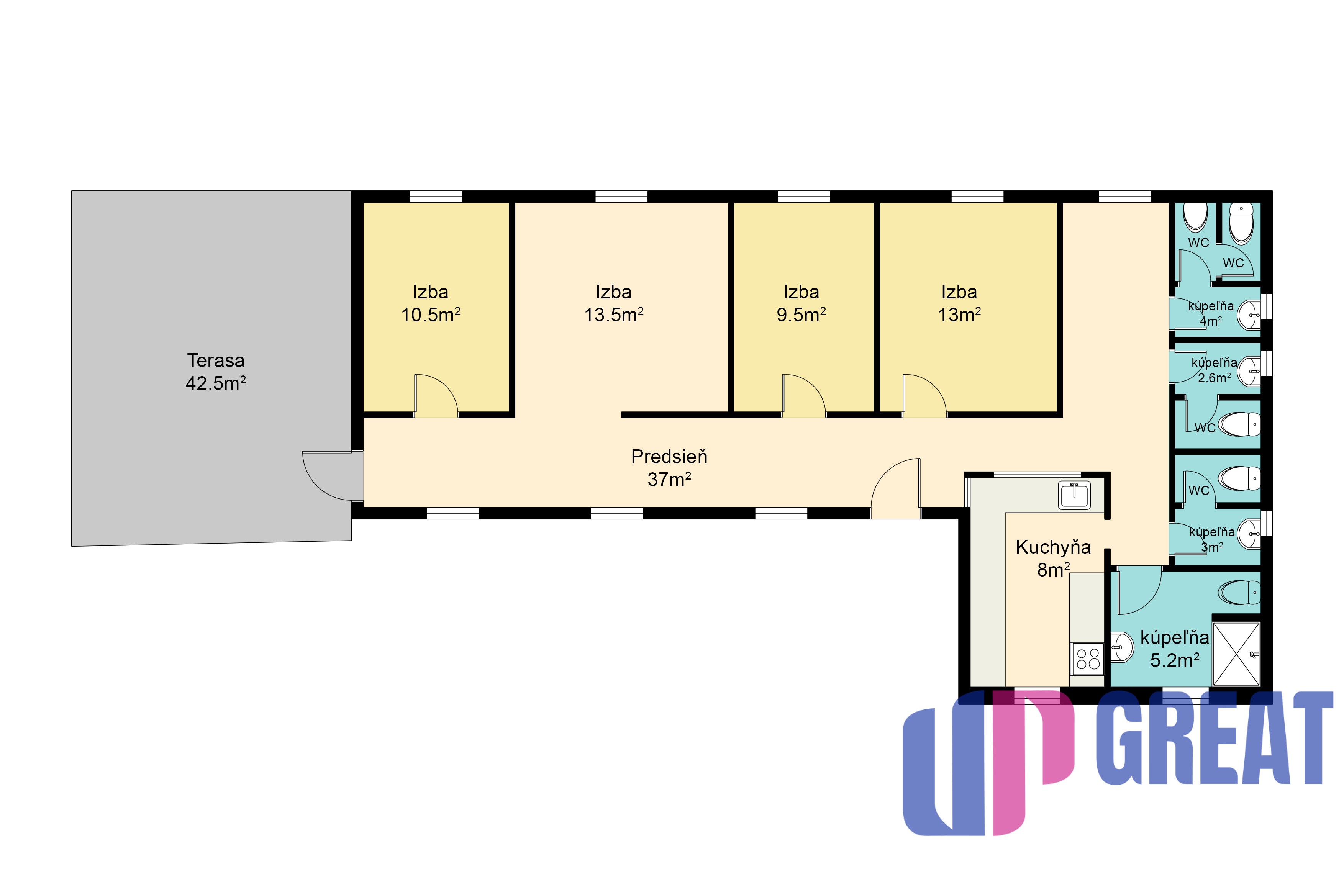 Zadná terasa: 42,5 m²