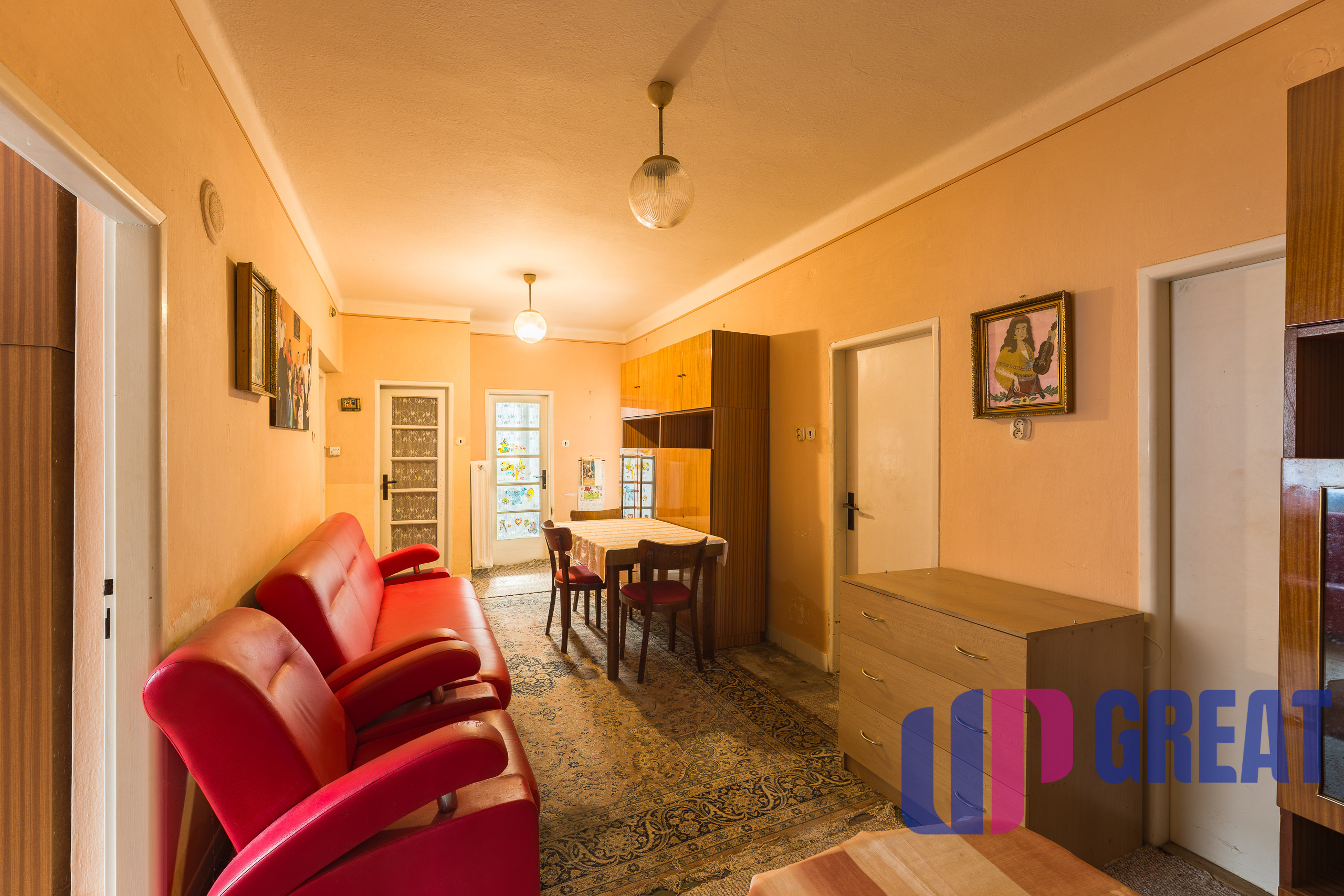 Realitná kancelária UPgreat ELEGANCE z poverenia majiteľa ponúka na predaj poschodový a čiastočne podpivničený rodinný dom v obci Nýrovce, postavený na rovinatom pozemku o výmere 515 m2 , s veľkou záhradou o rozmere 721 m2 , ktorá končí potokom. Predstavuje ideálnu príležitosť pre bývanie aj rekonštrukciu podľa vlastných predstáv. Dom pôsobí útulne a ponúka viacero obytných miestností, vďaka čomu je vhodný pre rodinu alebo ako investícia. Interiér je v pôvodnom stave, čo novému majiteľovi dáva možnosť prispôsobiť si ho presne podľa svojho štýlu a potrieb a je napojený na všetky IS.